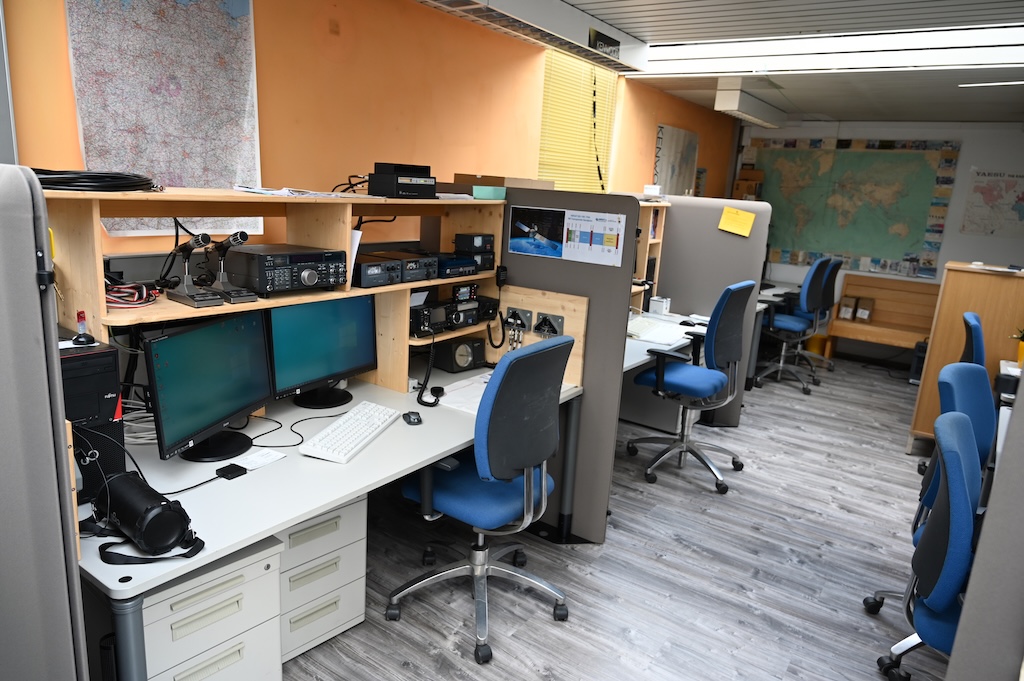 Hier sehen wir unsere zwei Arbeitsplätze für Kurzwelle. Ausgestattet sind wir mit zwei Kurzwellentransceivers IC-7300 mit denen wir per Sprechfunk, Morsezeichen (CW) und den digitalen Betriebsarten (FT-8, FT-4, …) auf Sendung gehen.