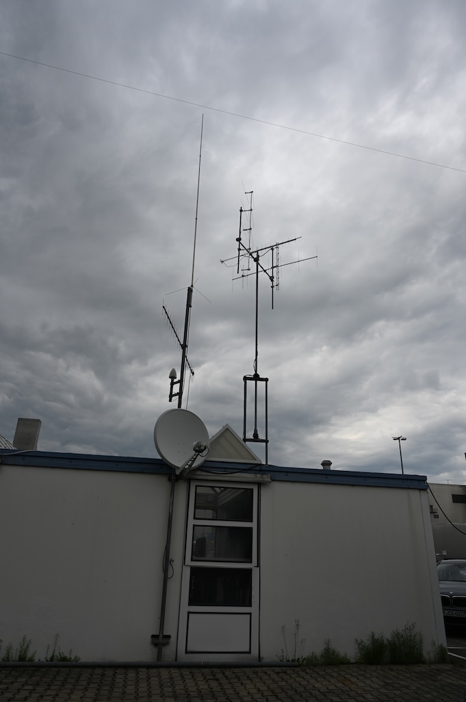 Für UKW haben wir einen Rundstrahler, eine Yagi und eine 4fach Quad Antenne aufgebaut. Auf dem 70cm-Band funken wir mit einer 8-fach Quand Antenne, das 23cm Band deckt eine Yagi Antenne ab. Alle Antennen sind drehbar und direkt von der Funkstation aus fernbedienbar.